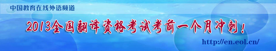 最近,有人通過(guò)互聯(lián)網(wǎng)向考生“兜售”所謂全國(guó)翻譯專業(yè)資格2013年考試真題,這完全是詐騙行為,請(qǐng)廣大考生提高警惕,不要上當(dāng)受騙。預(yù)祝廣大考生取得優(yōu)異成績(jī)!