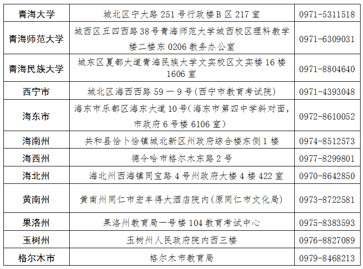 主考學(xué)校(考區(qū))地址及聯(lián)系方式