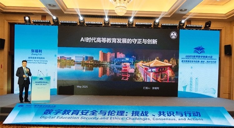 在平行會議“數(shù)字教育安全與倫理:挑戰(zhàn)、共識與行動”上,湖南信息學院黨委副書記、校長張福利參加了人機交互與信息安全中心揭牌儀式,并與圖靈獎得主、中國科學院外籍院士約翰·霍普克洛夫特(John Hopcroft),諾貝爾物理學獎得主、美國加州理工學院教授巴里·巴里什(Barry C.Barish),中國工程院院士方濱興,上海交通大學教授、華為操作系統(tǒng)首席科學家陳海波分別作主旨報告。