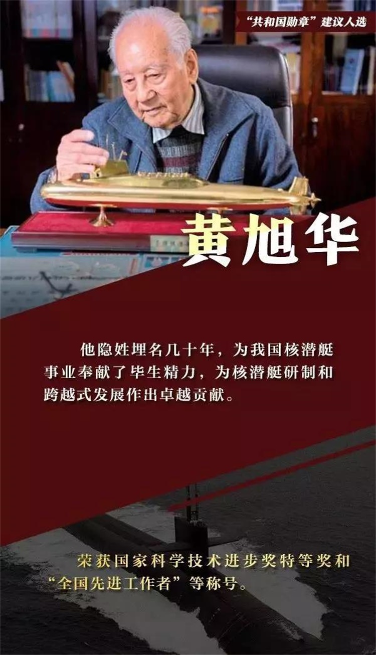 黃旭華為中國(guó)核潛艇事業(yè)的發(fā)展做出了重要貢獻(xiàn),在核潛艇水下發(fā)射運(yùn)載火箭的多次海上試驗(yàn)任務(wù)中,作為核潛艇工程總設(shè)計(jì)師、副指揮,開(kāi)拓了中國(guó)核潛艇的研制領(lǐng)域,被譽(yù)為中國(guó)核潛艇之父。
