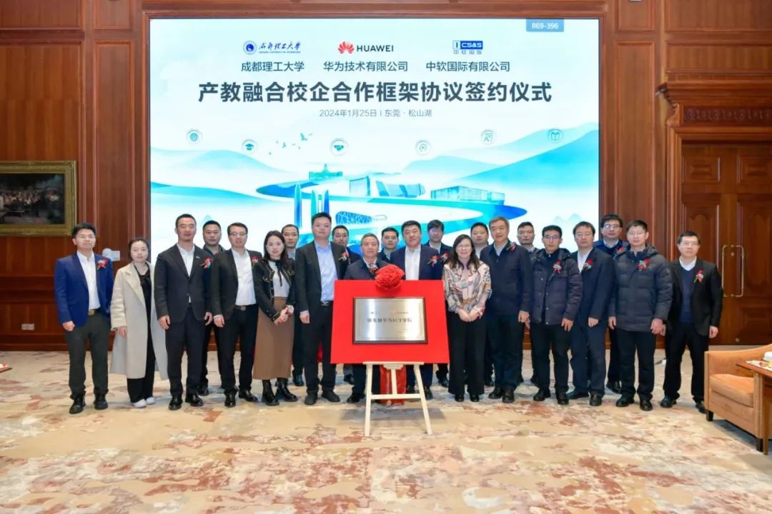 為深入貫徹落實國家創(chuàng)新驅(qū)動發(fā)展戰(zhàn)略,推進成都理工大學(xué)與國內(nèi)名企在產(chǎn)教融合、科教融匯、人才培養(yǎng)等方面的強強聯(lián)合、持續(xù)發(fā)展。近日,成都理工大學(xué)與華為技術(shù)有限公司、北京中軟國際信息技術(shù)有限公司產(chǎn)教融合校企合作協(xié)議簽約儀式于東莞松山湖舉行。