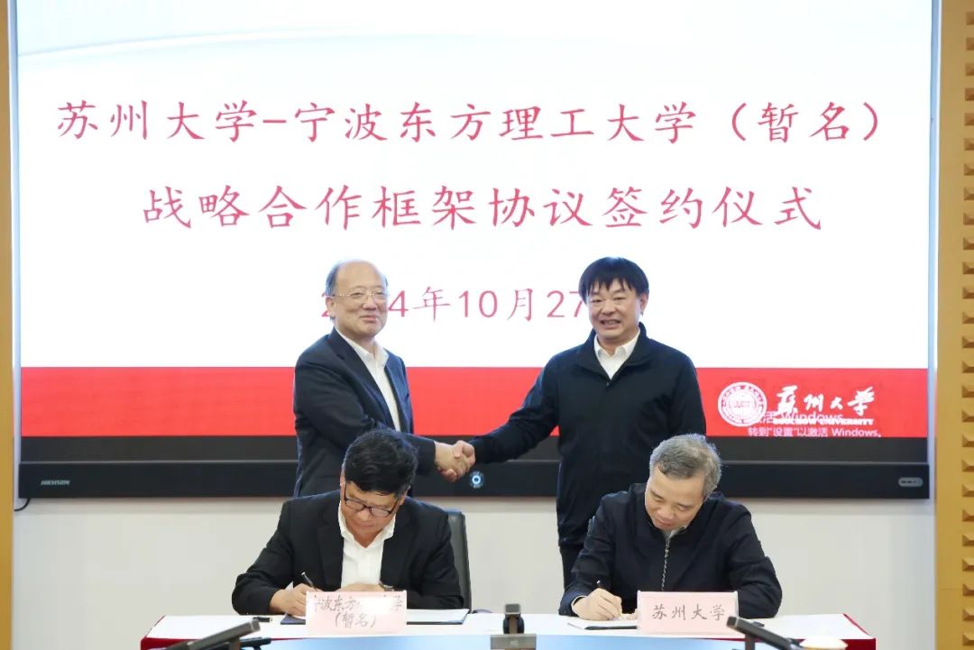 蘇州大學校長辦公室、人力資源處、教務處、研究生院、國內(nèi)合作發(fā)展處、科學技術研究院相關部門和單位負責人,東方理工教學工作部、對外合作部、科研部相關部門負責人出席簽約儀式。