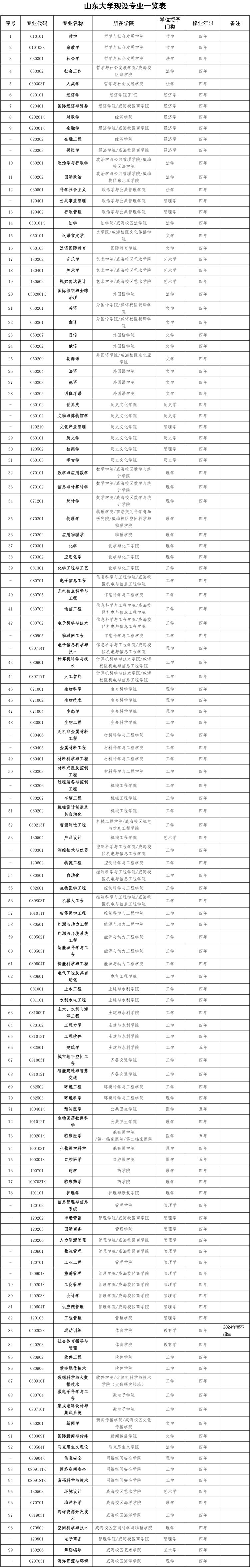 2月16日,山東大學(xué)發(fā)布2023年9月至2024年8月本科專業(yè)設(shè)置及調(diào)整情況,學(xué)校現(xiàn)有本科專業(yè)126個,當(dāng)前在招專業(yè)99個。金融工程、世界史、土木工程等27個專業(yè)暫停招生(序號標(biāo)為“-”的為停招專業(yè)),撤銷書法學(xué)、高分子材料與工程、包裝工程、材料物理、材料化學(xué)、工業(yè)設(shè)計、交通運(yùn)輸、資源循環(huán)科學(xué)與工程、制藥工程、電子商務(wù)(工學(xué)),新增工程軟件、運(yùn)動訓(xùn)練2個新專業(yè)。統(tǒng)計時點(diǎn)為2023-2024學(xué)年(即2023年9月1日至2024年8月31日)。