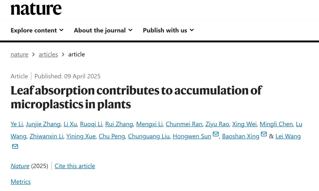 Nature+1!南開大學揭示植物葉片吸收微塑料機制