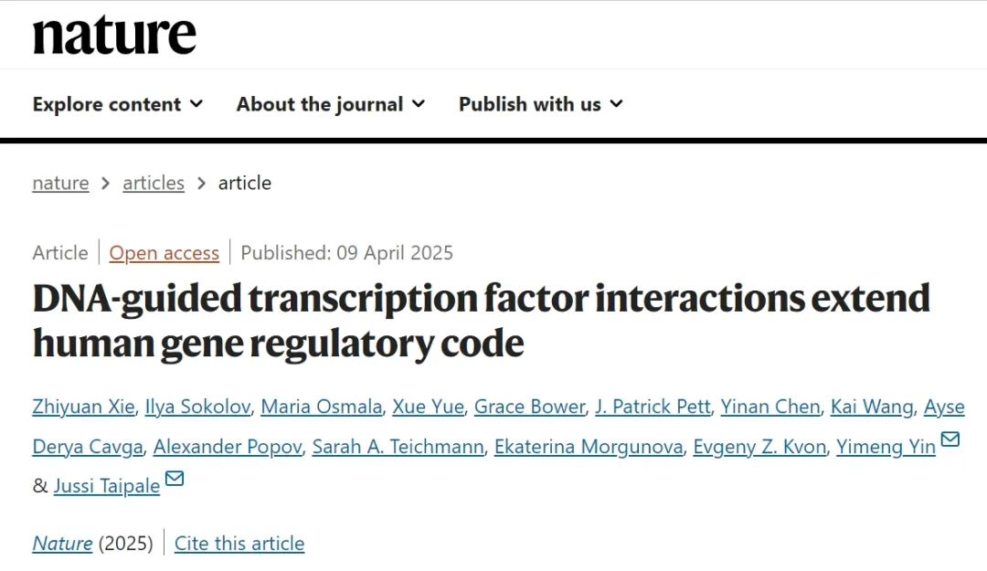北京時(shí)間4月9日23時(shí),同濟(jì)大學(xué)醫(yī)學(xué)院、同濟(jì)大學(xué)附屬東方醫(yī)院心臟病全國重點(diǎn)實(shí)驗(yàn)室尹貽蒙研究團(tuán)隊(duì)與劍橋大學(xué)研究團(tuán)隊(duì)合作研究成果在線發(fā)表于《自然》(Nature)雜志,論文題為“DNA-guided transcription factor interactions extend human gene regulatory code“(DNA介導(dǎo)的轉(zhuǎn)錄因子間協(xié)同作用延展了人類基因調(diào)控密碼)。
