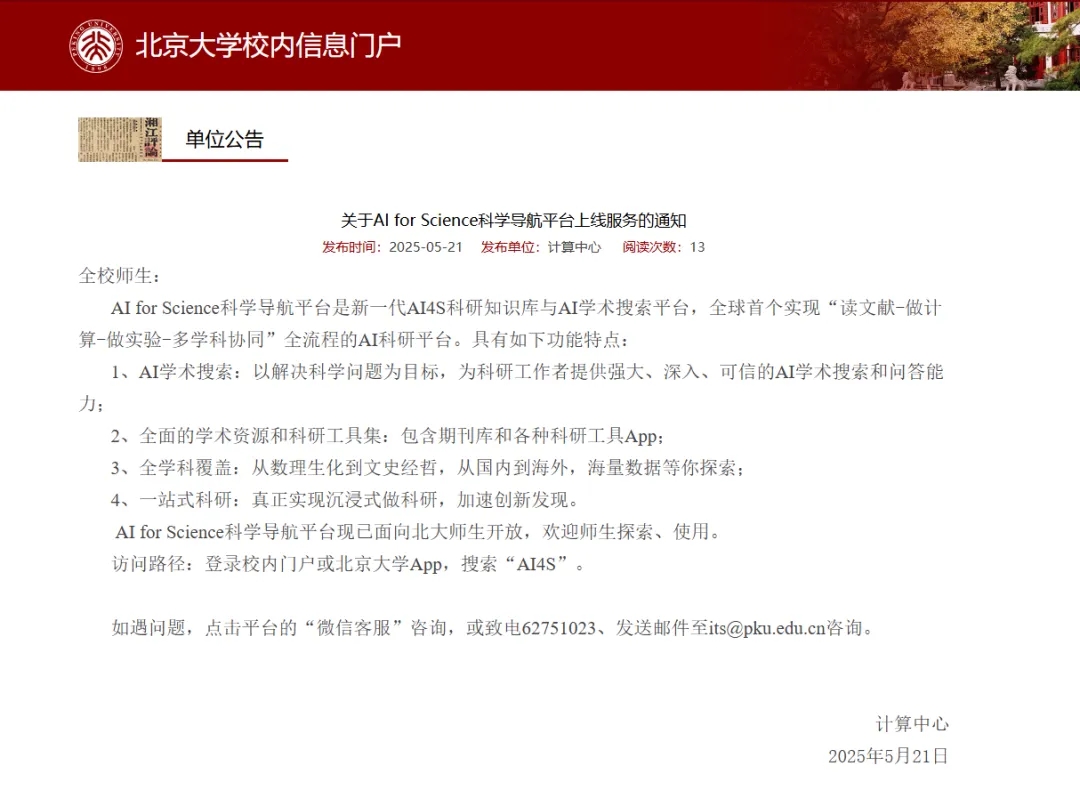 隨著機(jī)構(gòu)認(rèn)證平臺(tái)的上線,北京大學(xué)已邁入全球科研智能化轉(zhuǎn)型的先鋒行列。這不僅是技術(shù)工具的創(chuàng)新應(yīng)用,更是對"以問題驅(qū)動(dòng)科研"理念的實(shí)踐探索。當(dāng)百年學(xué)府的深厚積淀遇上AI的澎湃算力,燕園,必將見證更多世界級科研成果的誕生。