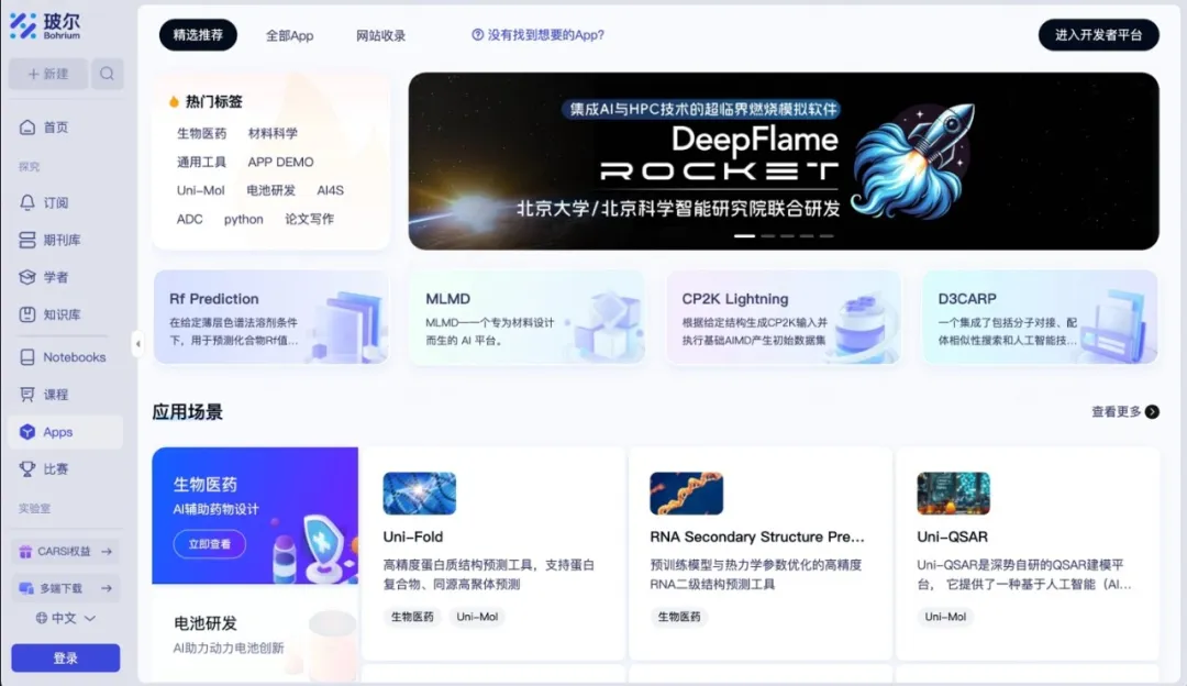 平臺(tái)Apps應(yīng)用商店集成200+科研工具,覆蓋文獻(xiàn)調(diào)研、干濕實(shí)驗(yàn)、數(shù)據(jù)分析、科研繪圖等全場景,同時(shí)開放開發(fā)者平臺(tái)支持自主上架定制化應(yīng)用。AI for Science學(xué)習(xí)社區(qū)則構(gòu)建“學(xué)-練-賽”閉環(huán):提供60+門AI與材料、化學(xué)、生物醫(yī)藥等交叉學(xué)科精品課程,嵌入AI助教實(shí)現(xiàn)24小時(shí)實(shí)時(shí)答疑;交互式Notebook工具優(yōu)化傳統(tǒng)編程環(huán)境,支持免費(fèi)CPU/GPU資源在線運(yùn)行,內(nèi)置代碼助手并收錄數(shù)千篇可一鍵復(fù)現(xiàn)的經(jīng)典案例;定期舉辦AI4S Cup頂級賽事,圍繞真實(shí)科研問題設(shè)置賽題,同時(shí)支持搭建校級/聯(lián)盟級競賽系統(tǒng),營造沉浸式科研實(shí)踐氛圍。