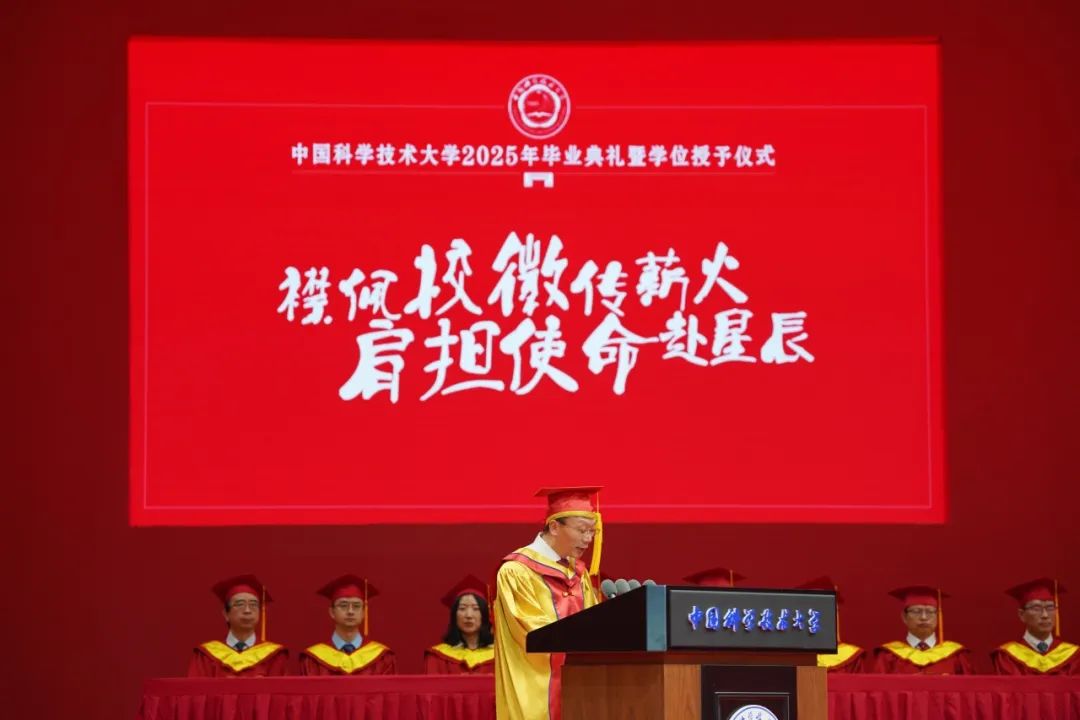 今天,我們隆重舉行中國(guó)科學(xué)技術(shù)大學(xué)2025年畢業(yè)典禮暨學(xué)位授予儀式。在此,我謹(jǐn)代表學(xué)校全體教職員工,向刻苦學(xué)習(xí)、潛心科研,圓滿完成學(xué)業(yè)、順利獲得學(xué)位的6700余名同學(xué)致以最熱烈的祝賀和最誠(chéng)摯的祝福!同時(shí),向辛勤養(yǎng)育你們的父母、悉心指導(dǎo)你們的老師、默默支持你們的親朋好友表示衷心的感謝!
