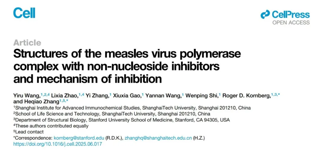 7月7日,國(guó)際學(xué)術(shù)期刊《細(xì)胞》(Cell)在線發(fā)表了上??萍即髮W(xué)免疫化學(xué)研究所張賀橋與諾貝爾獎(jiǎng)得主羅杰·科恩伯格(Roger Kornberg)團(tuán)隊(duì)的研究成果。該研究首次揭示了非核苷類抑制劑有效抑制麻疹病毒和尼帕病毒RNA聚合酶復(fù)合物活性的分子機(jī)制,為應(yīng)對(duì)這兩種全球性傳染病的抗病毒藥物研發(fā)提供了關(guān)鍵科學(xué)基礎(chǔ)。