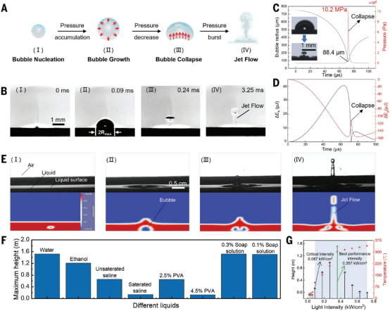 本文首次創(chuàng)新性地提出并驗(yàn)證了一種基于空化效應(yīng)的高效發(fā)射機(jī)制,通過精確控制液體中氣泡的劇烈潰滅過程,將傳統(tǒng)上具有破壞性的空化現(xiàn)象轉(zhuǎn)化為可控、高效的動力源,成功實(shí)現(xiàn)了微小型器件的高速跳躍、游泳和精準(zhǔn)運(yùn)動,在智能生物技術(shù)領(lǐng)域展現(xiàn)出重要的應(yīng)用潛力。