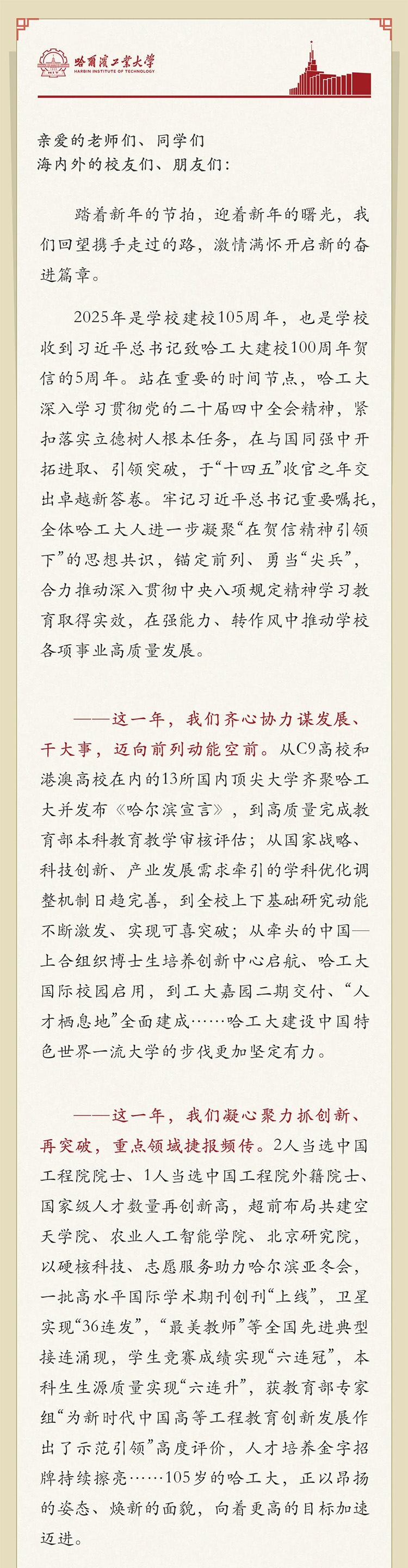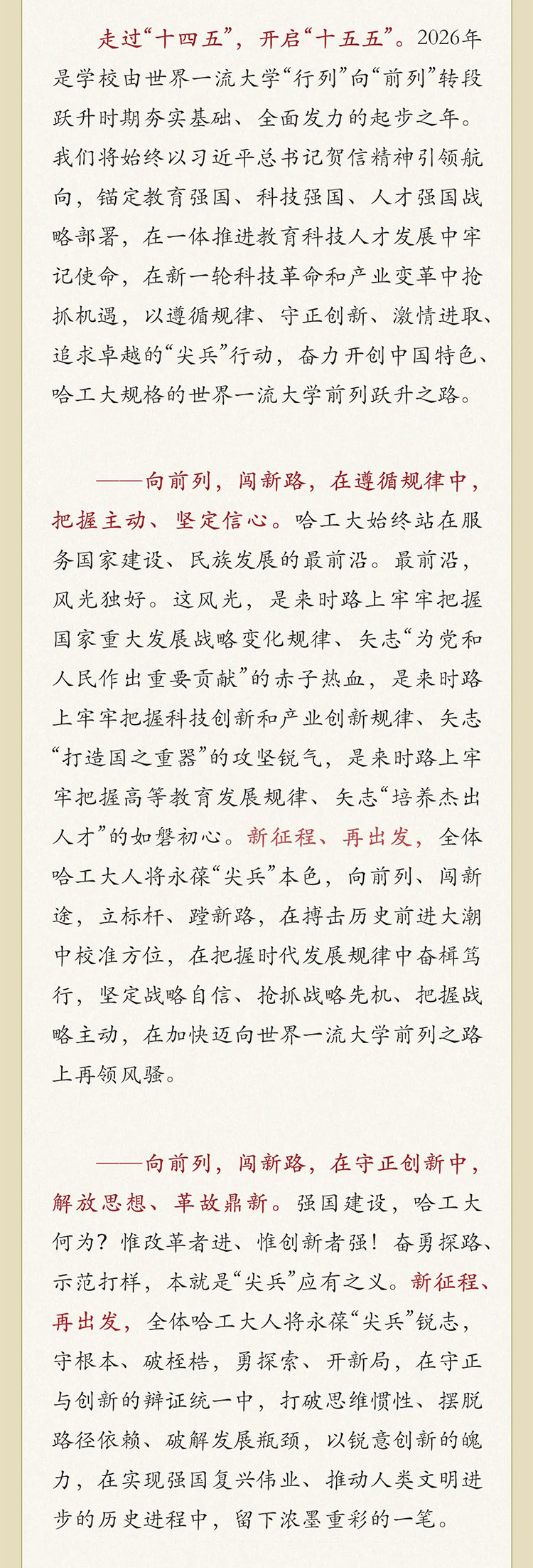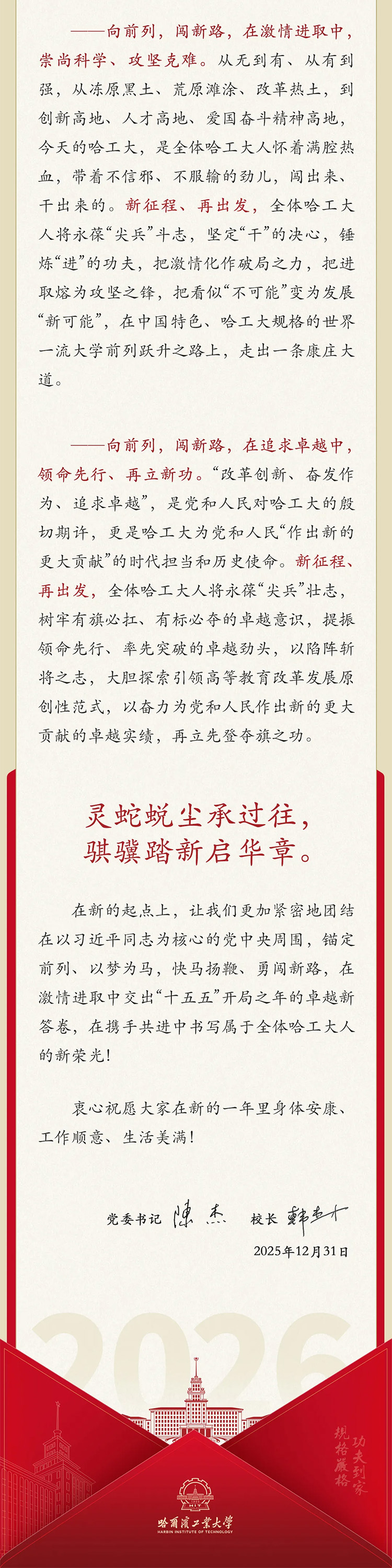 哈爾濱工業(yè)大學(xué)2026年新年獻(xiàn)詞:向前列 闖新路