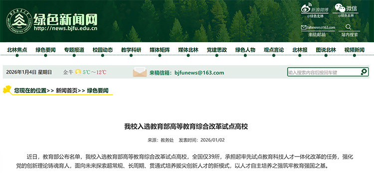 近日,教育部公布名單,北京林業(yè)大學入選教育部高等教育綜合改革試點高校,全國僅39所,承擔起率先試點教育科技人才一體化改革的任務,強化黨的創(chuàng)新理論鑄魂育人,面向未來探索超常規(guī)、長周期、貫通式培養(yǎng)拔尖創(chuàng)新人才的新模式,以人才自主培養(yǎng)之強筑牢教育強國之基。