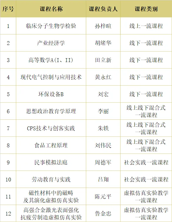江蘇大學(xué)此次被認(rèn)定的12門(mén)國(guó)家級(jí)一流本科課程