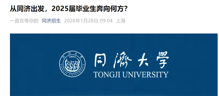 近日,同濟招生微信號公布了同濟大學2025屆畢業(yè)生就業(yè)數(shù)據(jù)。