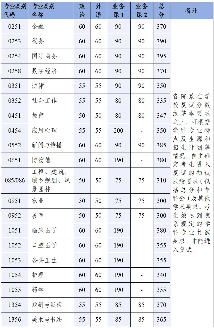 總分和單科成績(jī)均滿足所報(bào)考專業(yè)在上表中學(xué)校基本分?jǐn)?shù)線的要求,可參加差額復(fù)試。