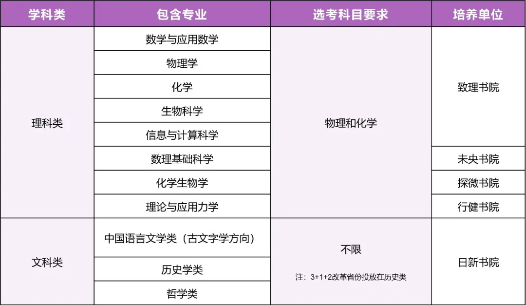 基礎理科學術類專業(yè)旨在選拔并培養(yǎng)在基礎理科領域有突出特長且有志于從事相關基礎研究的學生,包括:數(shù)學與應用數(shù)學、物理學、化學、生物科學、信息與計算科學。