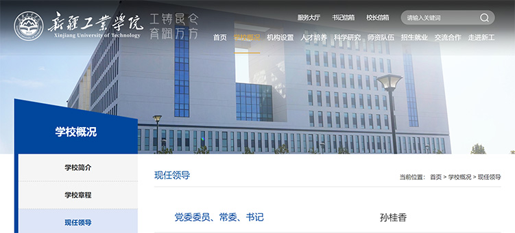 新疆工業(yè)學(xué)院官網(wǎng)顯示,此前擔(dān)任新疆工業(yè)學(xué)院臨時(shí)黨委書記、籌建組組長(zhǎng)的孫桂香,已擔(dān)任新疆工業(yè)學(xué)院黨委書記。