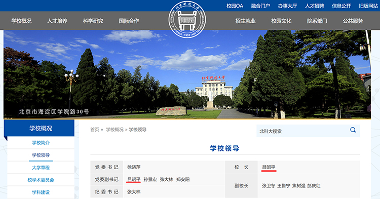 12月24日,北京科技大學(xué)官網(wǎng)“學(xué)校領(lǐng)導(dǎo)”一欄顯示,呂昭平已任北京科技大學(xué)黨委副書記、校長。