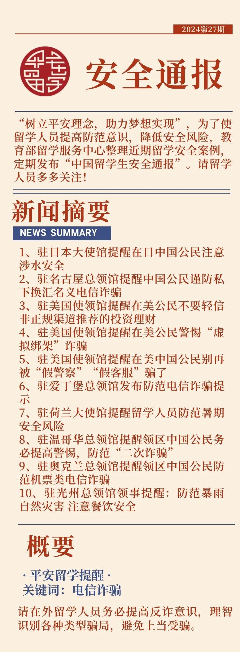 2024第27期中國(guó)留學(xué)生安全通報(bào)