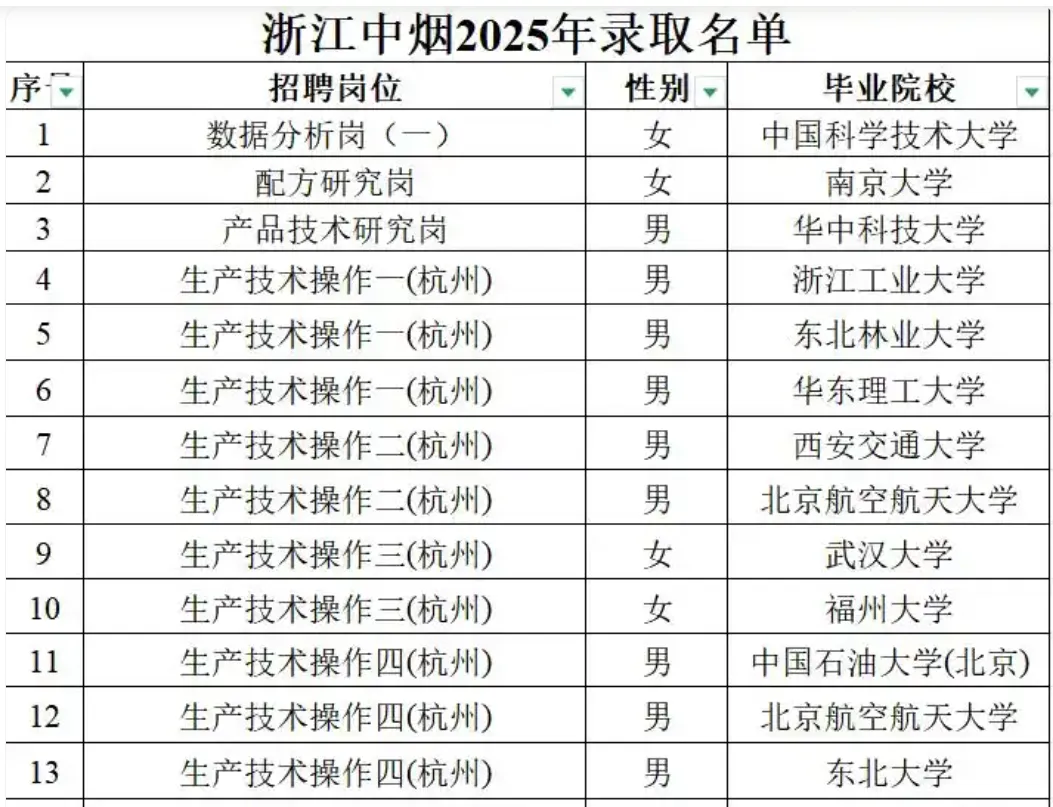實際上,這并非個例。近年來,類似生產(chǎn)一線的工人崗位招聘中,已屢現(xiàn)碩士生。浙江中煙2025年校招96人中,超半數(shù)是985、211及境外高校畢業(yè)生,其中不乏生產(chǎn)一線技術(shù)崗位。