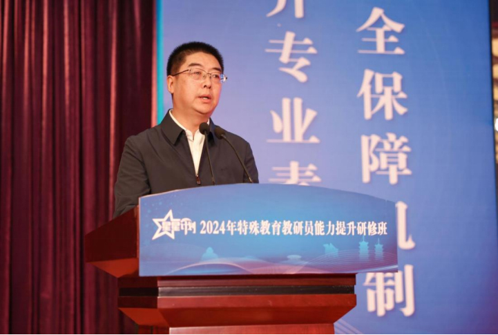 教育部基礎(chǔ)教育司副司長李海勝指出,此次特殊教育教研員能力提升研修班,是近年來首次舉辦的國家級特殊教育教研員隊(duì)伍專項(xiàng)培訓(xùn),這既是貫徹落實(shí)黨的二十大關(guān)于“強(qiáng)化特殊教育普惠發(fā)展”的實(shí)際行動,也是落實(shí)黨的二十屆三中全會“健全特殊教育保障機(jī)制”的具體體現(xiàn),對建設(shè)教育強(qiáng)國,提升民生保障力,構(gòu)建公平優(yōu)質(zhì)基礎(chǔ)教育體系具有重要意義。辦好特殊教育,是黨和政府堅(jiān)持以人民為中心、弘揚(yáng)人道主義精神和保障基本人權(quán)的重要舉措,是推進(jìn)教育高質(zhì)量發(fā)展、加快建設(shè)教育強(qiáng)國的應(yīng)有之義,也是推進(jìn)中國式現(xiàn)代化、實(shí)現(xiàn)共同富裕的內(nèi)在要求。他強(qiáng)調(diào),加強(qiáng)特殊教育教研工作,是提升特殊教育質(zhì)量的關(guān)鍵所在。各級教育部門要高度重視特殊教育教研工作,健全教研體制機(jī)制,加強(qiáng)教研隊(duì)伍建設(shè),提升教學(xué)研究水平和教學(xué)指導(dǎo)能力,為特殊教育高質(zhì)量發(fā)展提供有力支撐。