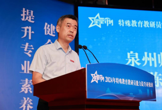 10月14日,由中國教師發(fā)展基金會主辦,北京字節(jié)跳動公益基金會捐資,中國教育科學(xué)研究院學(xué)術(shù)支持,泉州師范學(xué)院承辦的“星星計(jì)劃”特殊教育教研員能力提升研修班在泉州師范學(xué)院舉辦。教育部基礎(chǔ)教育司副司長李海勝,中國教師發(fā)展基金會副秘書長張東燕,福建省教育廳黨組成員、副廳長陳麗英,泉州師范學(xué)院校長陳昌萍,西南大學(xué)特殊教育學(xué)院院長趙斌,北京字節(jié)跳動公益基金會項(xiàng)目經(jīng)理范真麒等出席了開班儀式。泉州師范學(xué)院黨委常委、副校長夏侯建兵主持開班儀式。來自全國各地的特殊教育教研員兩百人參加研修班。