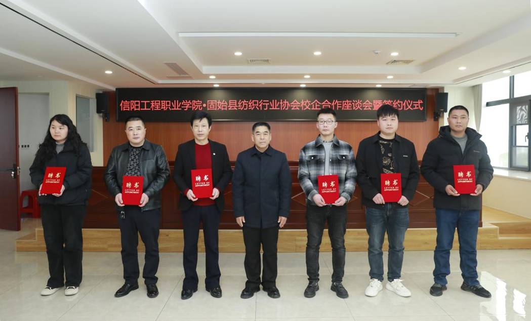 在簽約儀式上,黃功學代表信陽工程職業(yè)學院與固始縣紡織行業(yè)協(xié)會會長蔣信華鄭重簽訂了“冠名班”人才培養(yǎng)協(xié)議。這一協(xié)議的簽訂標志著校企雙方將在人才培養(yǎng)、技術(shù)創(chuàng)新和社會服務(wù)等方面展開全面深入的合作。同時,楊金國為6位“冠名班”企業(yè)導師頒發(fā)了聘書,進一步強化了校企合作的師資力量。