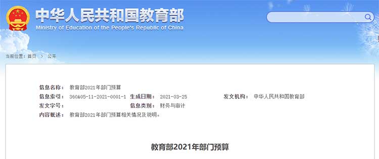 點擊查看:教育部2021年部門預算