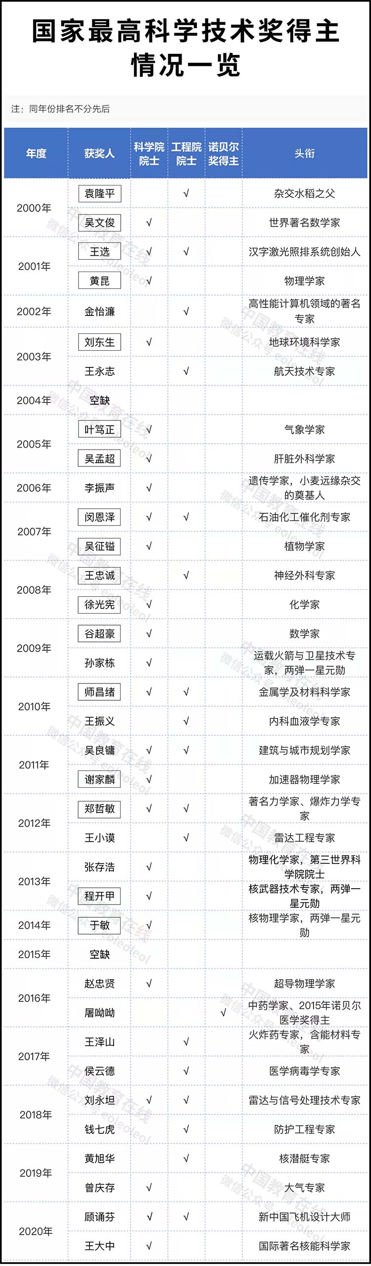 2020年度國家最高科學(xué)技術(shù)獎(jiǎng)獲獎(jiǎng)人