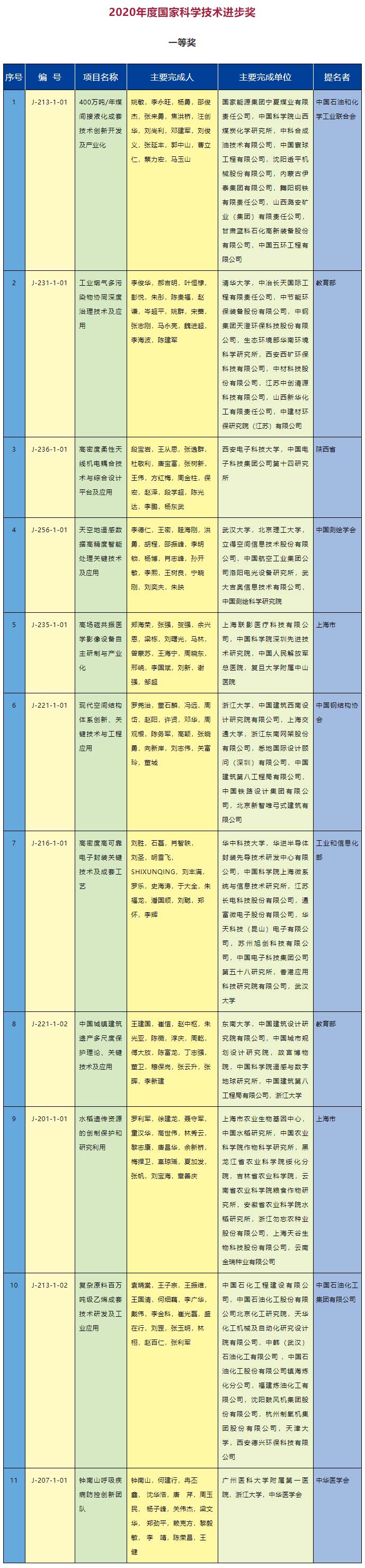 經(jīng)網(wǎng)絡(luò)評(píng)審組、學(xué)科專業(yè)評(píng)審組、評(píng)審委員會(huì)和獎(jiǎng)勵(lì)委員會(huì)評(píng)審,科技部審核,2020年度國家科學(xué)技術(shù)獎(jiǎng)共評(píng)選出264個(gè)項(xiàng)目、10名科技專家和1個(gè)國際組織。其中,國家自然科學(xué)獎(jiǎng)46項(xiàng),一等獎(jiǎng)2項(xiàng),二等獎(jiǎng)44項(xiàng);國家技術(shù)發(fā)明獎(jiǎng)61項(xiàng):一等獎(jiǎng)3項(xiàng),二等獎(jiǎng)58項(xiàng);國家科學(xué)技術(shù)進(jìn)步獎(jiǎng)157項(xiàng):特等獎(jiǎng)2項(xiàng),一等獎(jiǎng)18項(xiàng),二等獎(jiǎng)137項(xiàng)。有8位外國專家和1個(gè)國際組織獲中華人民共和國國際科學(xué)技術(shù)合作獎(jiǎng)。