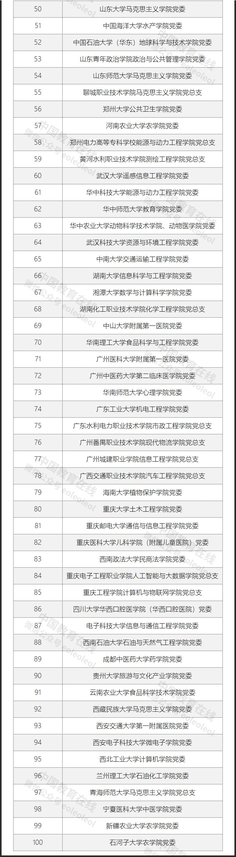 第三批“全國黨建工作標(biāo)桿院系”培育創(chuàng)建單位名單如下: