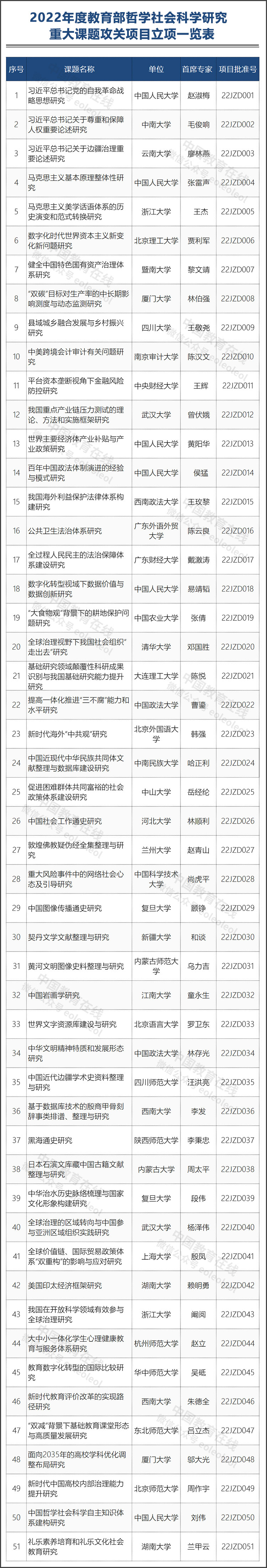 51項(xiàng)!教育部公布2022年度哲學(xué)社會科學(xué)研究重大課題攻關(guān)項(xiàng)目