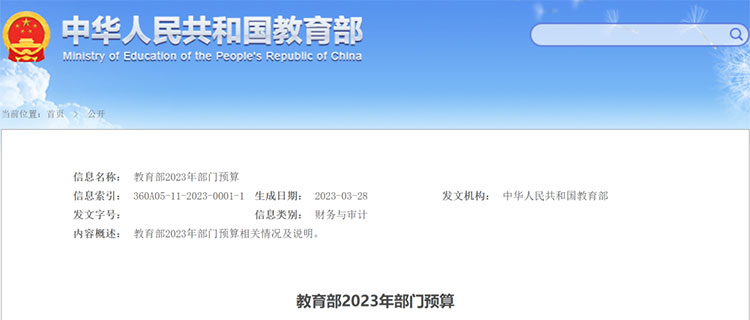 3月28日,教育部官方網(wǎng)站公布了教育部2023年部門預(yù)算。預(yù)算文件顯示,教育部2023年部門預(yù)算中一般公共預(yù)算當(dāng)年財(cái)政撥款為 13,547,129.91 萬元,比 2022年執(zhí)行數(shù)增加 247,272.00 萬元。