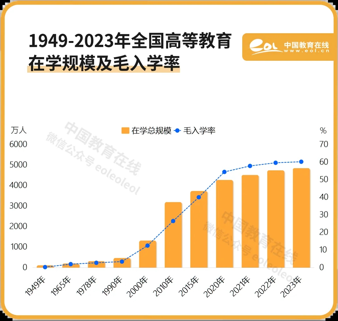 2023年,我國高等教育毛入學率達到60.2%,比1949年提高59.9個百分點,提前完成“十四五”規(guī)劃目標。
