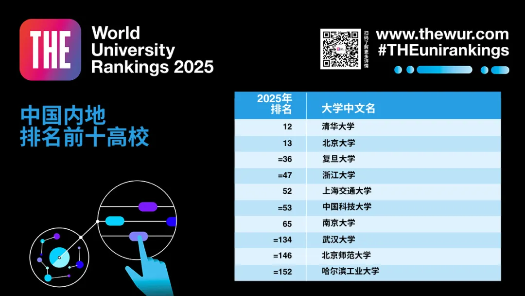 · 在2025年泰晤士高等教育(THE)世界大學(xué)排名中,中國內(nèi)地高校排名穩(wěn)步上升,繼續(xù)向世界前十名邁進(jìn)。