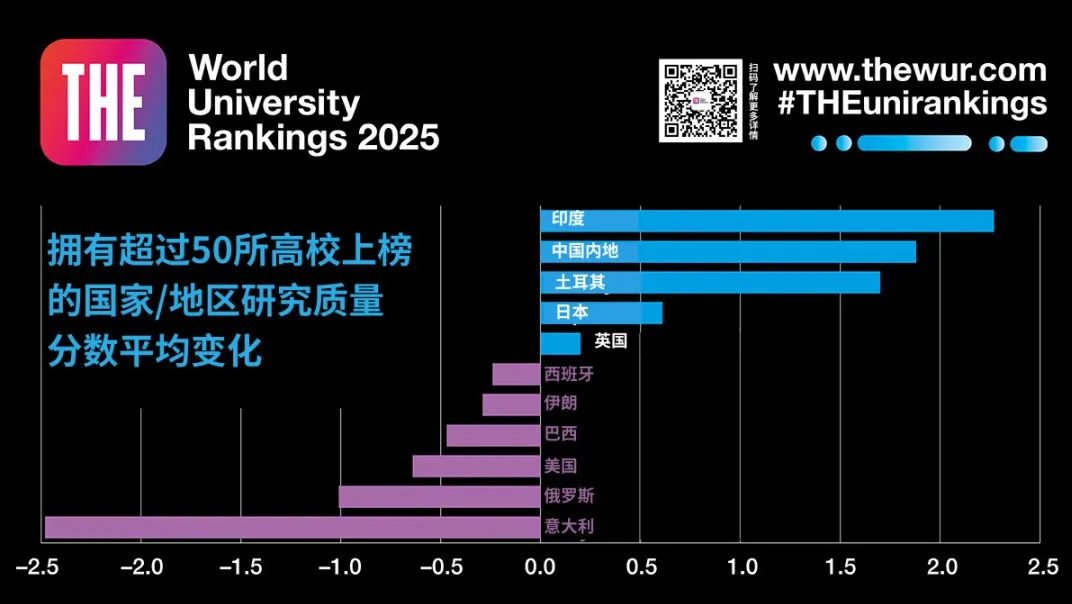 此次2025年世界大學(xué)排名中,中國內(nèi)地共有94所大學(xué)上榜,比去年的86所有所增加。與去年相比,有 26 所院校的排名有所上升,使中國內(nèi)地整體的排名上升了21%。