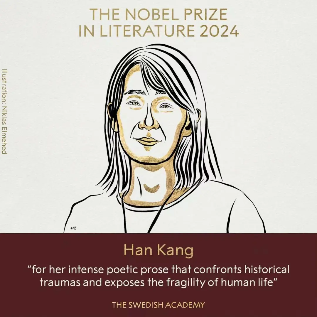 2024年諾貝爾文學獎授予韓國作家韓江“她面對歷史創(chuàng)傷,揭露人類生命脆弱的強烈詩意散文。”