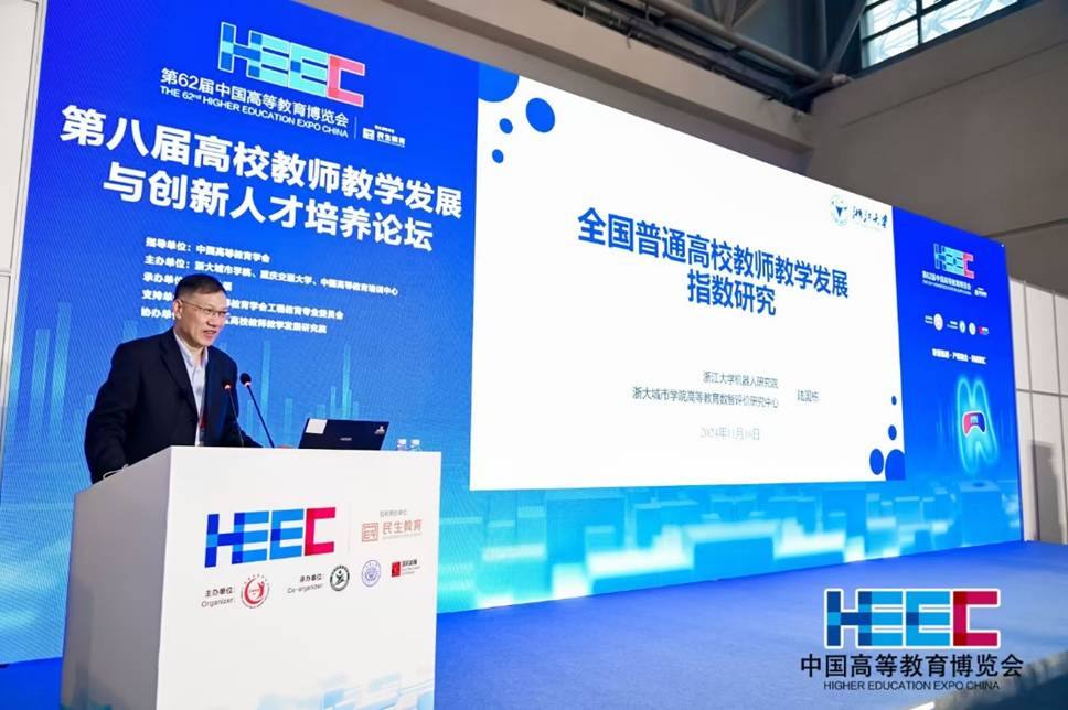 11月16日,第八屆高校教師教學(xué)發(fā)展與創(chuàng)新人才培養(yǎng)論壇在重慶順利召開(kāi),論壇是第62屆高等教育博覽會(huì)的組成部分。中國(guó)高等教育學(xué)會(huì)副秘書(shū)長(zhǎng)吳英策,中國(guó)高等教育學(xué)會(huì)工程教育專(zhuān)業(yè)委員會(huì)常務(wù)副秘書(shū)長(zhǎng)、浙江大學(xué)中國(guó)科教戰(zhàn)略研究院副院長(zhǎng)張煒,中國(guó)高等教育學(xué)會(huì)工程教育專(zhuān)業(yè)委員會(huì)秘書(shū)長(zhǎng)、浙大城市學(xué)院高等教育數(shù)智評(píng)價(jià)研究中心主任陸國(guó)棟等300多位專(zhuān)家學(xué)者參與活動(dòng)。大會(huì)第一階段由浙江大學(xué)張煒教授主持。