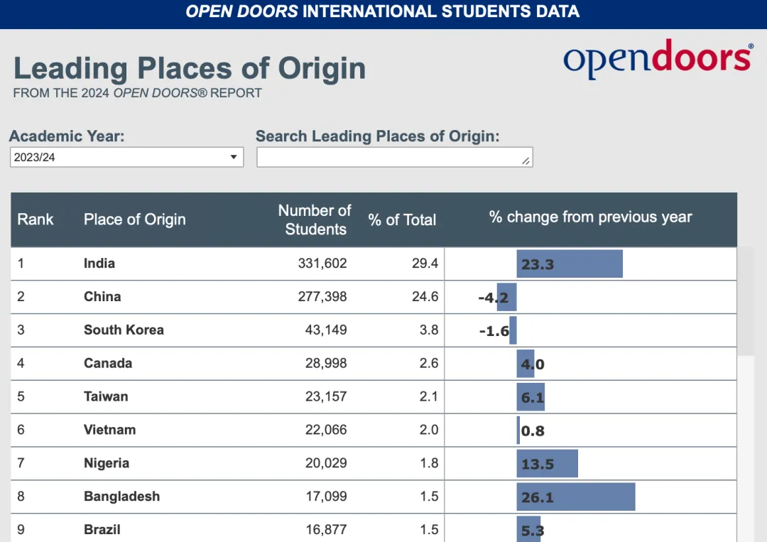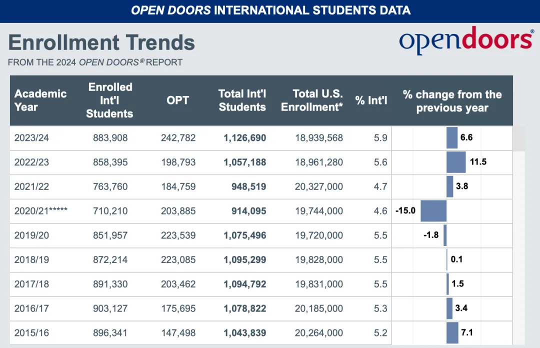 北京時(shí)間2024年11月18日晚,美國(guó)國(guó)際教育研究所(Institute of International Education, IIE)發(fā)布了《2024年度美國(guó)國(guó)際教育門戶報(bào)告》,也就是:Open Doors 2024 Report。