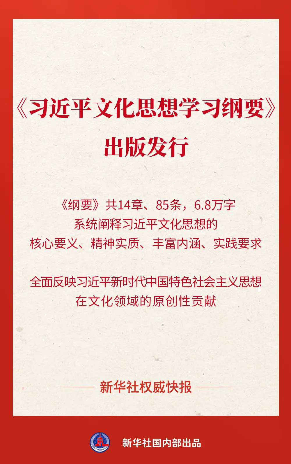 為深入學(xué)習(xí)習(xí)近平新時(shí)代中國特色社會主義思想,貫徹落實(shí)習(xí)近平文化思想,中央宣傳部組織編寫《習(xí)近平文化思想學(xué)習(xí)綱要》(以下簡稱《綱要》)一書,已由學(xué)習(xí)出版社、人民出版社聯(lián)合出版,即日起在全國發(fā)行。