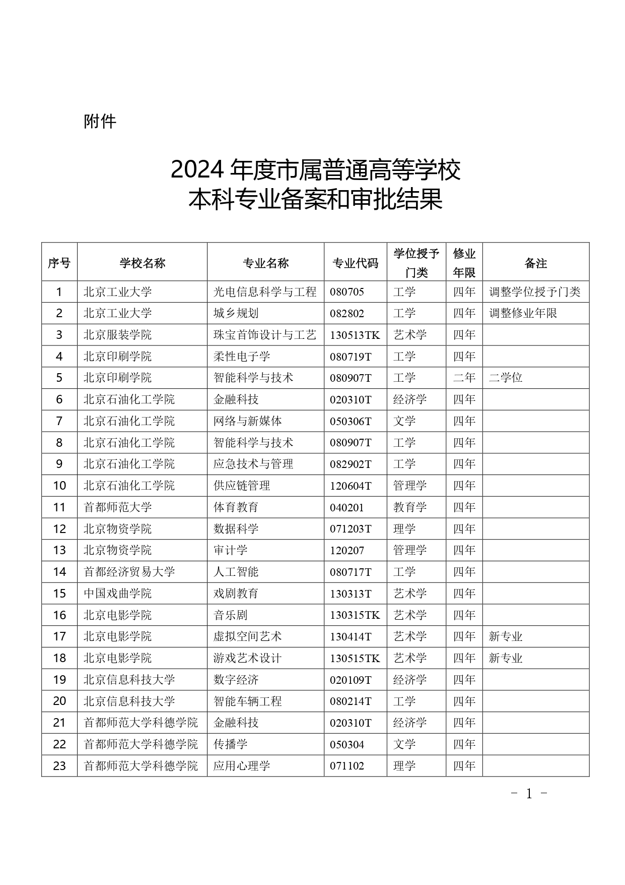 北京市教育委員會關(guān)于公布2024年度市屬普通高等學(xué)校本科專業(yè)備案和審批結(jié)果的通知