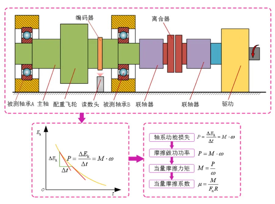 受陀螺旋轉(zhuǎn)游戲的啟發(fā),團(tuán)隊(duì)提出了一種基于動(dòng)能定理的滾動(dòng)軸承當(dāng)量摩擦系數(shù)的測(cè)量方法?!熬拖癫煌O(shè)計(jì)品質(zhì)的陀螺停止總有先后,能量的耗散也就是摩擦做功可以隨時(shí)間反映出來?!比纬勺娼忉屨f。