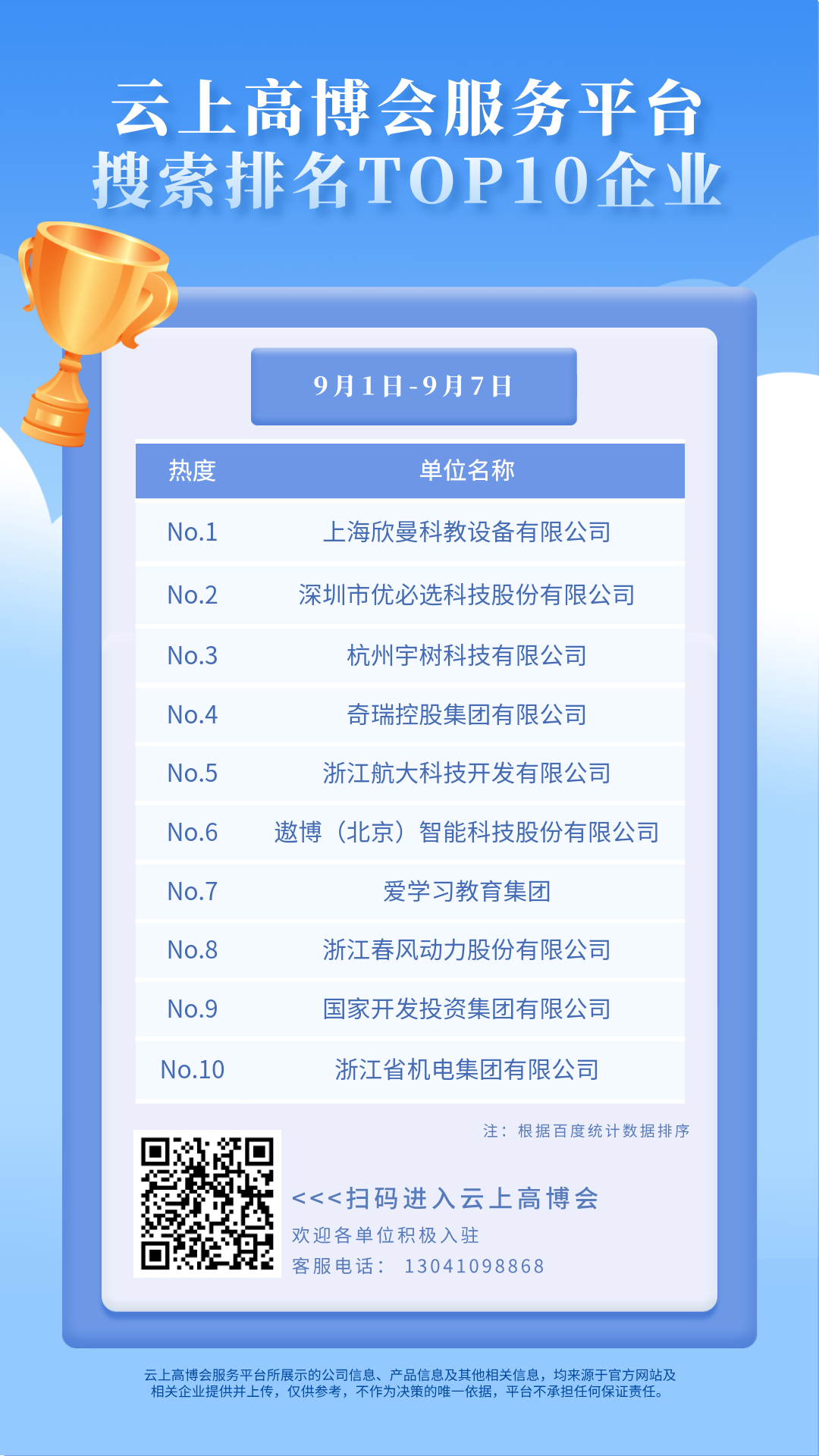 云上高博會熱搜榜(9.1-9.7)TOP10企業(yè)、高校榜單來啦