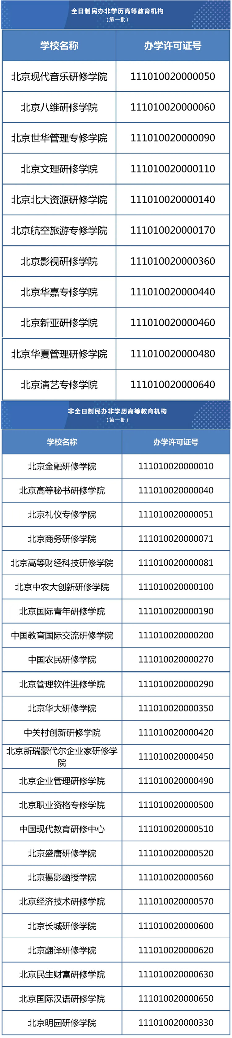 首批35所民辦非學(xué)歷高等教育機(jī)構(gòu)獲批招生,包括11所全日制機(jī)構(gòu)、24所非全日制機(jī)構(gòu)。另有3所學(xué)校(北京應(yīng)用技術(shù)專修學(xué)院、北京機(jī)械工程師進(jìn)修學(xué)院、北京當(dāng)代藝術(shù)研修學(xué)院)未通過年檢,將停止招生并進(jìn)行整改。