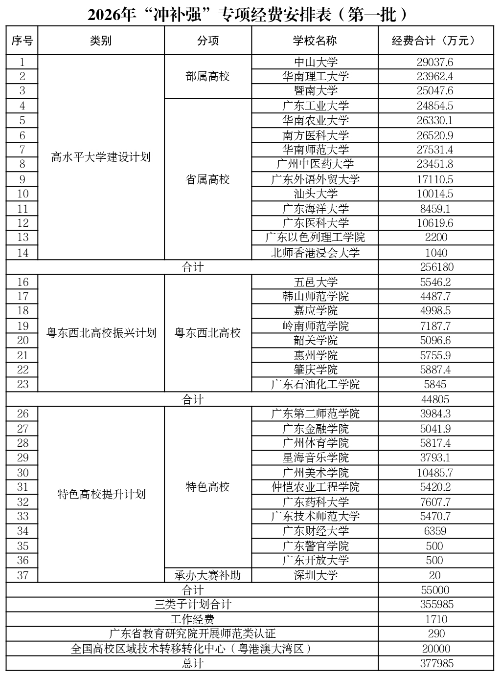 12月24日,廣東省教育廳公布《關(guān)于2026年高等教育“沖一流、補(bǔ)短板、強(qiáng)特色”專項(xiàng)資金安排方案(第一批)的公示》,擬安排37.7985億元支持34所高?!皼_補(bǔ)強(qiáng)”。