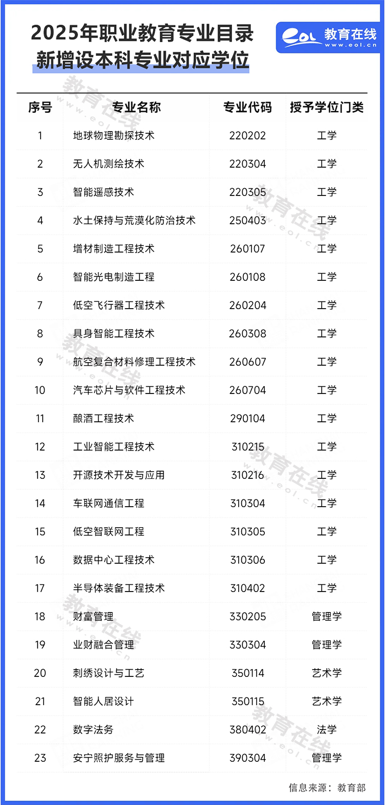 新增23個(gè)!教育部更新高職本科專業(yè)學(xué)士學(xué)位授予學(xué)科門類對(duì)應(yīng)表