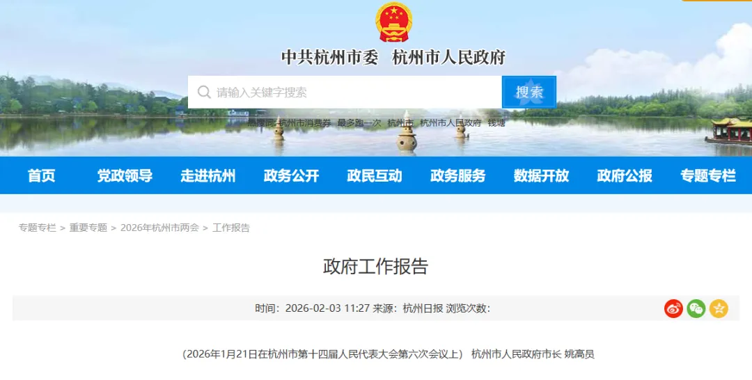 2月3日,2026年杭州市政府工作報告(全文)發(fā)布。報告在“十五五”發(fā)展主要目標(biāo)任務(wù)中提到:深入實(shí)施“雙一流196”、高?;A(chǔ)設(shè)施提質(zhì)、“名校名院名所”等重大工程,深化與浙江大學(xué)等在杭高校戰(zhàn)略合作,推進(jìn)“環(huán)浙大”創(chuàng)新創(chuàng)業(yè)生態(tài)圈建設(shè),支持西湖大學(xué)進(jìn)入國家“雙一流”建設(shè)高校序列并成為新型研究型大學(xué)標(biāo)桿、杭州師范大學(xué)爭創(chuàng)國家A類學(xué)科、浙大城市學(xué)院建設(shè)高水平一流應(yīng)用型大學(xué)、錢塘大學(xué)建設(shè)新型研究型大學(xué)。