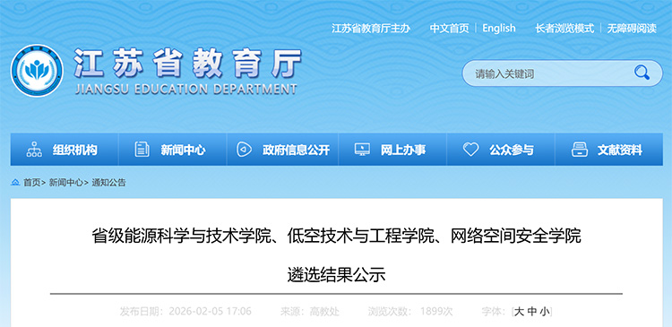 近日,江蘇省教育廳發(fā)布《省級能源科學(xué)與技術(shù)學(xué)院、低空技術(shù)與工程學(xué)院、網(wǎng)絡(luò)空間安全學(xué)院遴選結(jié)果公示》。經(jīng)高校申報(bào)、材料初審、專家審核等程序,擬立項(xiàng)建設(shè)13個(gè)省級能源科學(xué)與技術(shù)學(xué)院、10個(gè)省級低空技術(shù)與工程學(xué)院、9個(gè)省級網(wǎng)絡(luò)空間安全學(xué)院。