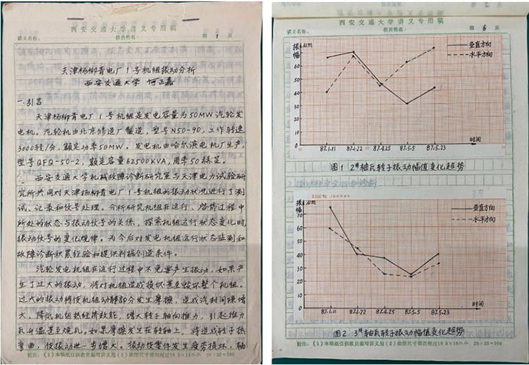 2020年9月19日,由屈梁生院士夫人發(fā)起并參與捐資的“屈梁生院士基金”正式成立,主要支持獎勵設(shè)備狀態(tài)監(jiān)測與故障診斷技術(shù)研究領(lǐng)域的優(yōu)秀學(xué)生、青年學(xué)者和專家。同時,以屈梁生院士和何正嘉教授的名字命名的“屈何故障診斷實驗室”在高端裝備研究院揭牌,以此紀(jì)念屈院士和何教授,傳承和發(fā)揚他們的精神。實驗室的櫥窗里,存放著二老的手稿,密密麻麻的字跡里寫滿了對科學(xué)的嚴(yán)謹(jǐn)態(tài)度與求真務(wù)實的堅守。