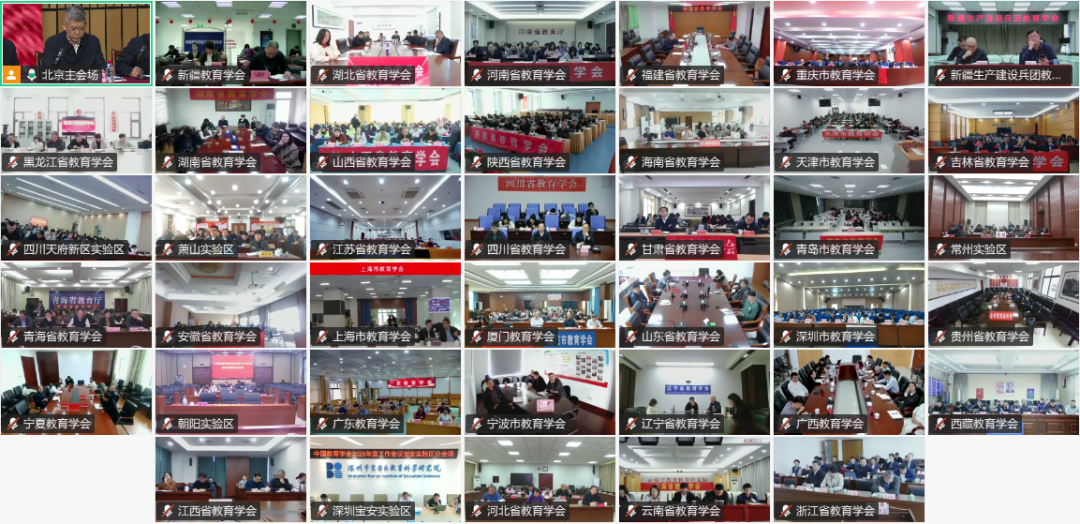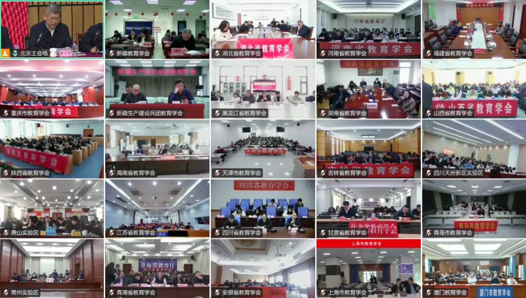 中國教育學會常務理事、理事,各分支機構(gòu)理事長、秘書長,各省(自治區(qū)、直轄市)和新疆生產(chǎn)建設兵團教育學會、各計劃單列市教育學會負責人在北京主會場和各地分會場參會。學會監(jiān)事,學術(shù)委員會副主任委員、委員,教改實驗區(qū)負責同志等列席會議。會議以線下線上相結(jié)合形式召開,全國41個分會場共1000余名代表集中參會。